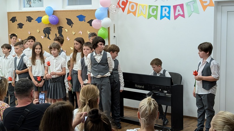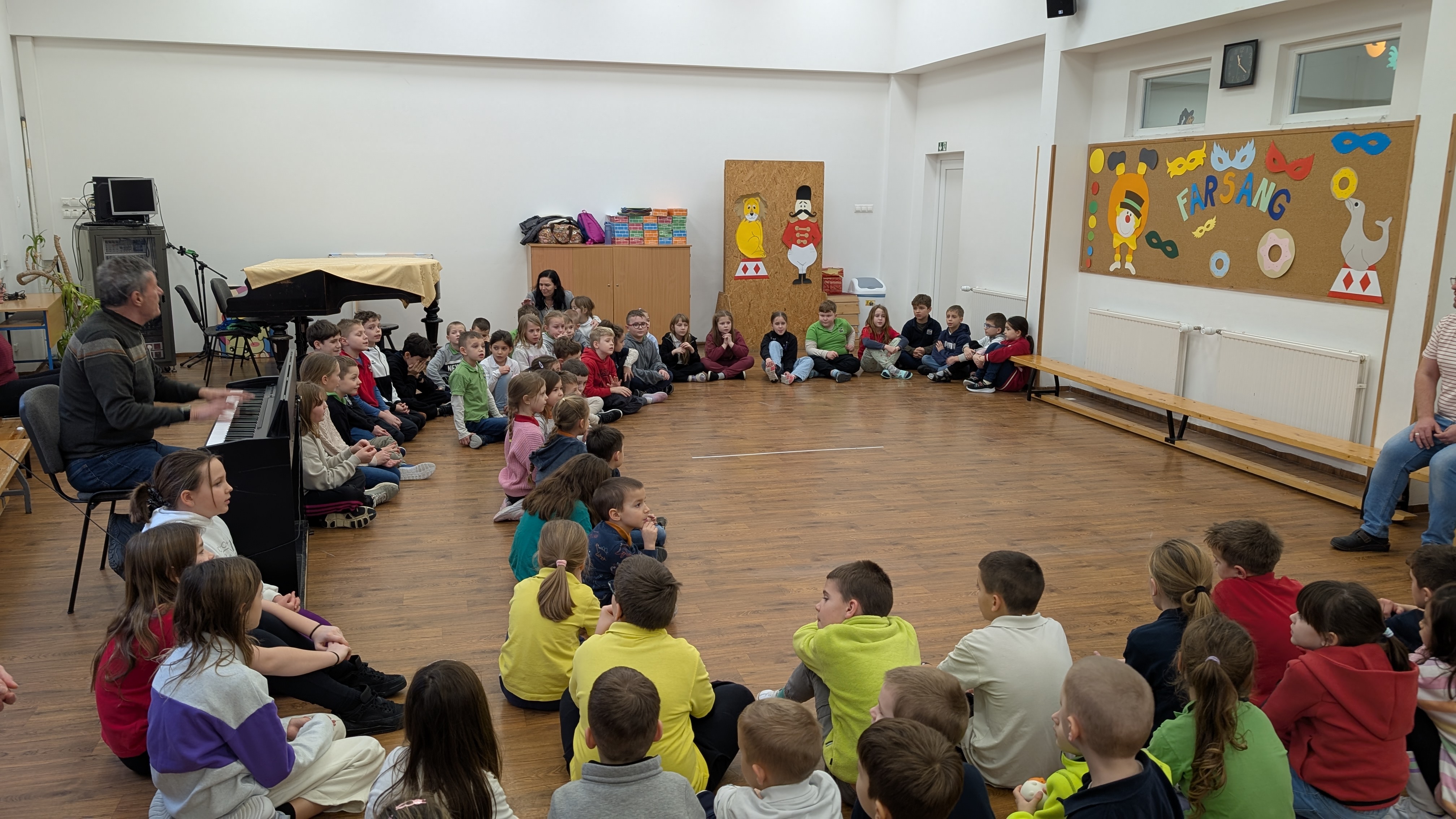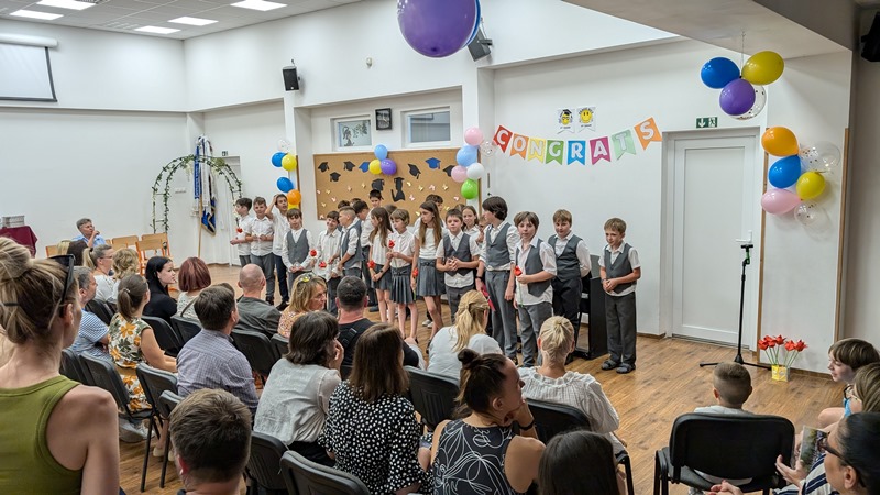 A 4. évfolyamosok közösen adtak elő egy műsort énekekkel és zongora előadással tarkítva. Ezután elköszöntek tanítóiktól, majd szokásunkhoz hűen a nyolcadik osztályosok vezetésével átsétáltak a Koppány utcába, ahol sok szeretettel, ropogtatni valóval, frissítővel, kvíz játékkal és ajándékkal várták őket. A szülőknek ez idő alatt Mónos Viktoria igazgatóhelyettes tartott tájékoztatót.