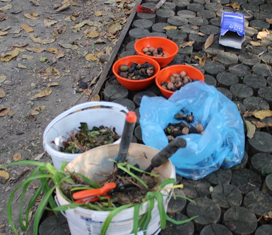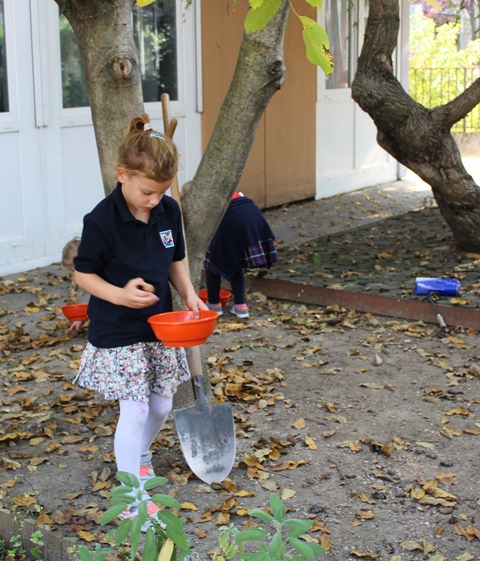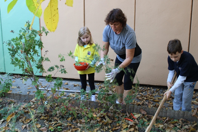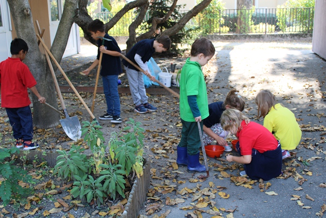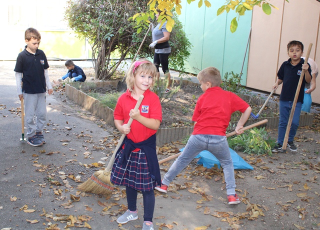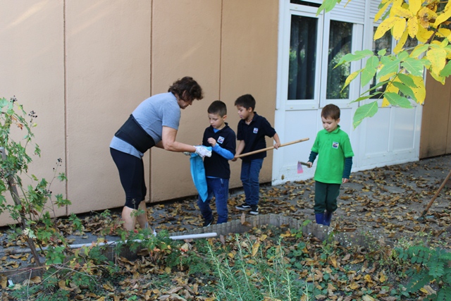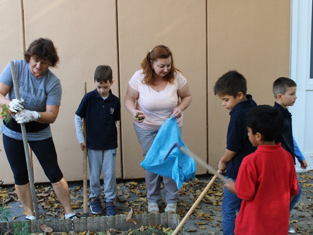 A kislányok szorgalmasan gyűjtögették a diót a kiskosarakba, míg a fiúk inkább a kerti szerszámokat részesítették előnyben. Bőszen kapáltak és gereblyéztek, segítettek a gazolásban is a tanító néniknek. A kert megtisztítása után új növényeket ültettek, majd zsákba szedték a diófa levelét.