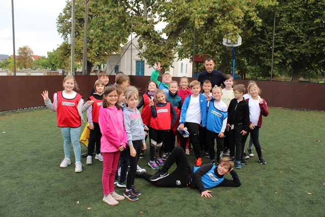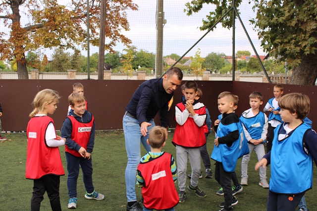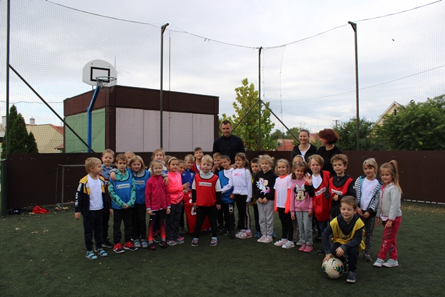 A futás után Nikolics Nemanjával, a MOL Fehérvár válogatott futbalistájával focizhattak a gyerekek. Nagy öröm volt, hogy Nemanja focilabdákat és egy saját mezt ajándékozott az iskolának.